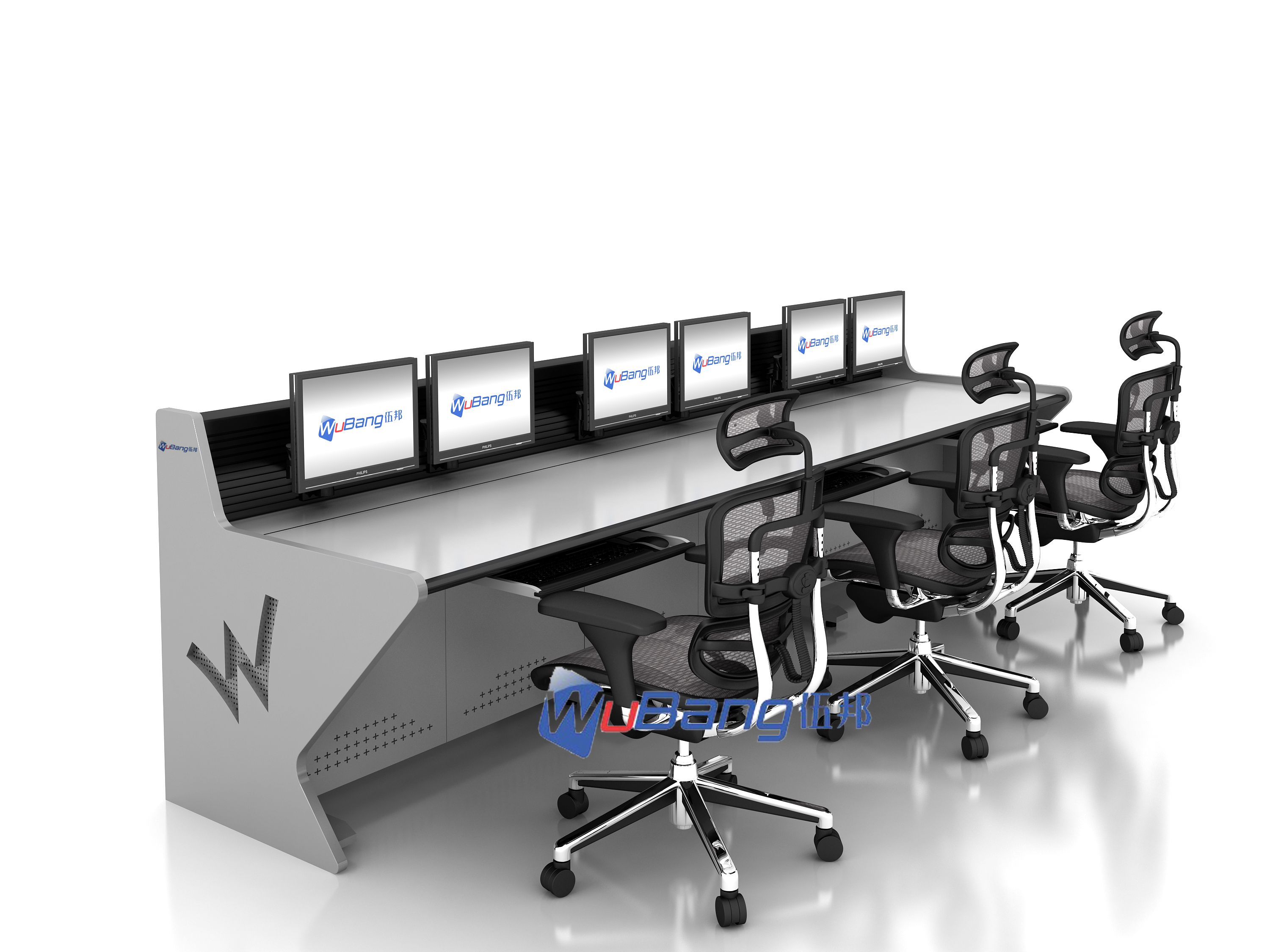 伍邦调度台拥有一批专业的室内设计团队;结合人体工程学和美学观点,将现代化监控环境下的室内装修风格考虑其中,搭配多角度模块化的可拼接结构,开放式桌面解决方案,在保证造型简洁美观,功能多样实用的同时,还具备可拓展性功能,实现技术升级。